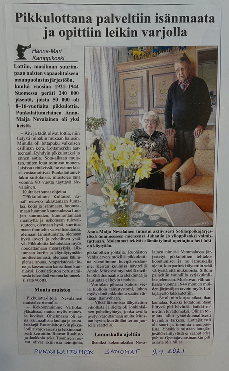 Kuva 6: Pikkulotta Anna-Maija Nevalaisen haastattelu Punkalitumen Sanomissa 9.4.2021.