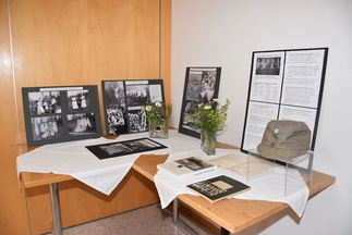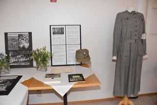 Kuvat 1 - 4: Lotta-aiheinen näyttely Huittisten pääkirjaston Hermanni-salissa, marraskuu 2021. (Lähde: Lauttakylä 10.11.2021)